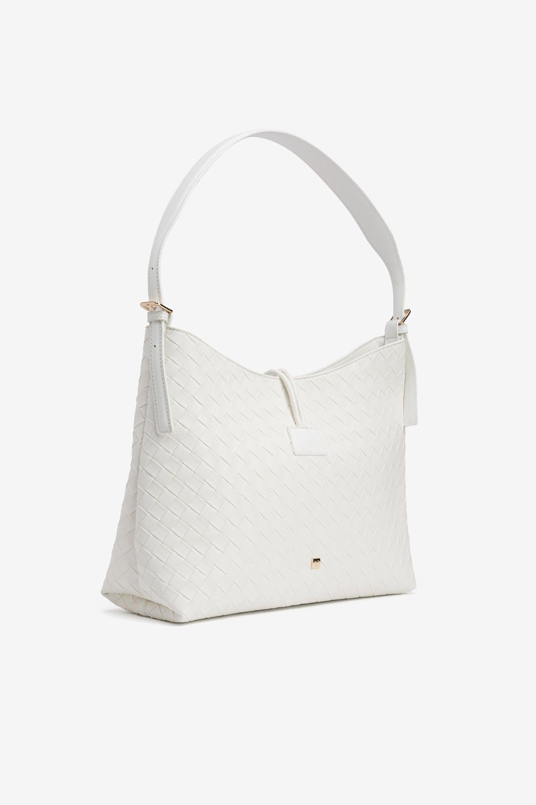 Bolso de hombro efecto piel con textura tramada, cierre magnético y detalle decorativo de nudo. Correa ajustable y bolsillo interior con cremallera. Tamaño grande. Dimensiones: 34 x 26 x 13 cm